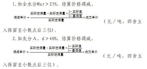 (4)如化驗(yàn)單批次Qnet,ar<(基準(zhǔn)值-300),該批煤作廢,按0元結(jié)算。