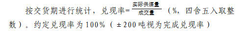 (一)銷方因自身原因導致兌現率低于100%,除按質量考核條款考核外,還將進行兌現率考核,考核金額=成交量×(100%-兌現率)×成交價×5%,從保證金中扣除。