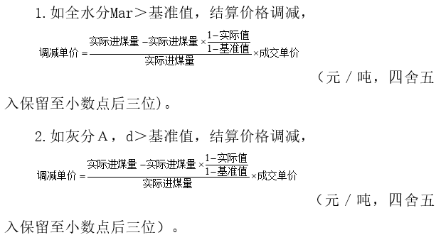 每日全部來煤為一個批次,該批次的所有子樣化驗結果加權平均值作為該批次煤的質量指標,自然月或執行期所有批次質量指標的加權平均值作為結算依據。各煤種質量考核包括熱值、硫分、水分、灰分考核。具體條款內容如下: