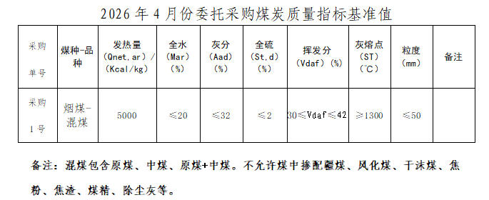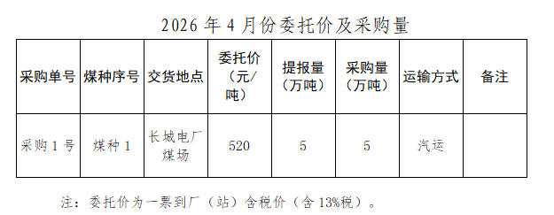 內蒙古能源集團有限公司計劃對所屬長城發電有限公司2026年4月市場煤采購進行電子專場交易,交易信息現對外公開發布,凡符合條件的交易商均可參加。