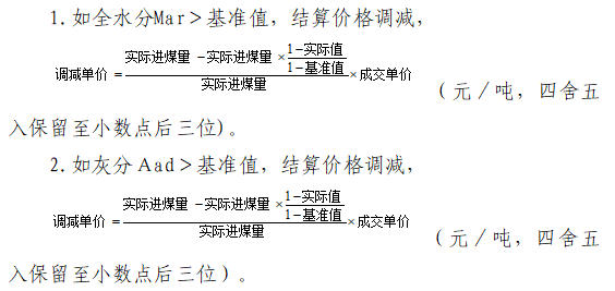 2.如(基準(zhǔn)值)<St,d≤(基準(zhǔn)值+0.2),以基準(zhǔn)值為基礎(chǔ),每增加0.01個(gè)百分點(diǎn),結(jié)算價(jià)格調(diào)減0.2元/噸。